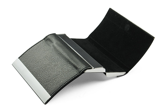 Niezwykle praktyczny wizytownik z materiału skóropodobnego (PU), dzięki któremu można przechowywać zarówno wizytówki swoje, jak i klientów. Wystarczy otworzyć właściwą przegródkę. Wizytownik pomieści 20 wizytówek (10 z kazdej strony). Grawer logo zrobimy na blaszce.