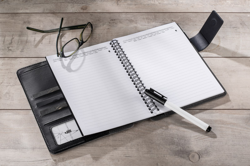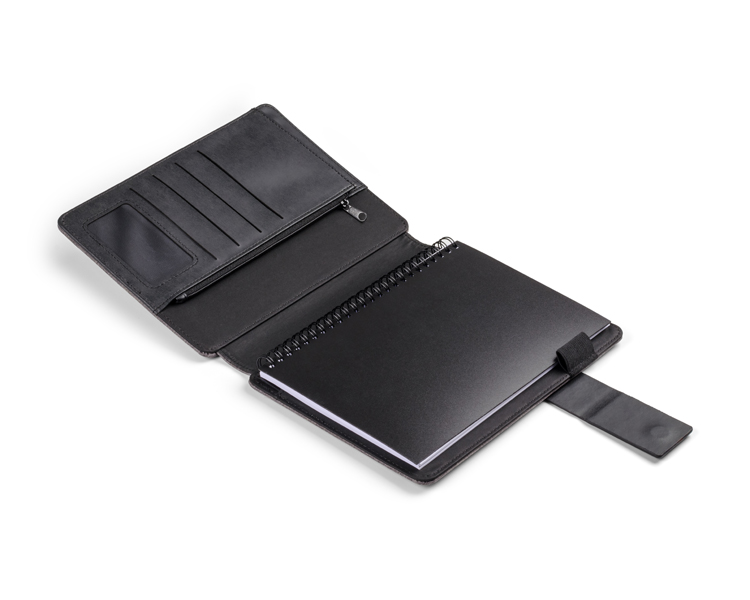 Wykonane z lnu zewnętrzne pokrycie teczki CARLIS posiada dwie kieszonki na telefon i pamięć USB. W środku znajduje się wymienny notes A5 (50 kartek w linie), duża kieszeń zamykana na zamek, miejsce na długopis oraz 4 małe kieszonki w tym 1 z okienkiem. Teczka zamykana jest za pomocą magnetycznego zatrzasku. Umieszczona na zatrzasku metalowa płytka pozwala na wykonanie efektownego grawerowania, który z pewnością podkreśli elegancki charakter teczki.