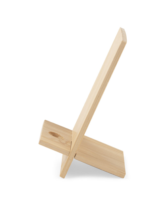 RAGA to praktyczny stojak do telefonu wykonany w całości z ekologicznego surowca - bambusa. Zapewnia stabilną podstawę dla telefonów i innych urządzeń mobilnych. Otwór na kabel pozwoli bez problemu naładować urządzenie w czasie korzystania ze stojaka. Produkt do samodzielnego złożenia poprzez połączenie dwóch bambusowych płytek. Stojak zapakowany jest w papierową brązową kopertę z infografiką - instrukcją montażu.