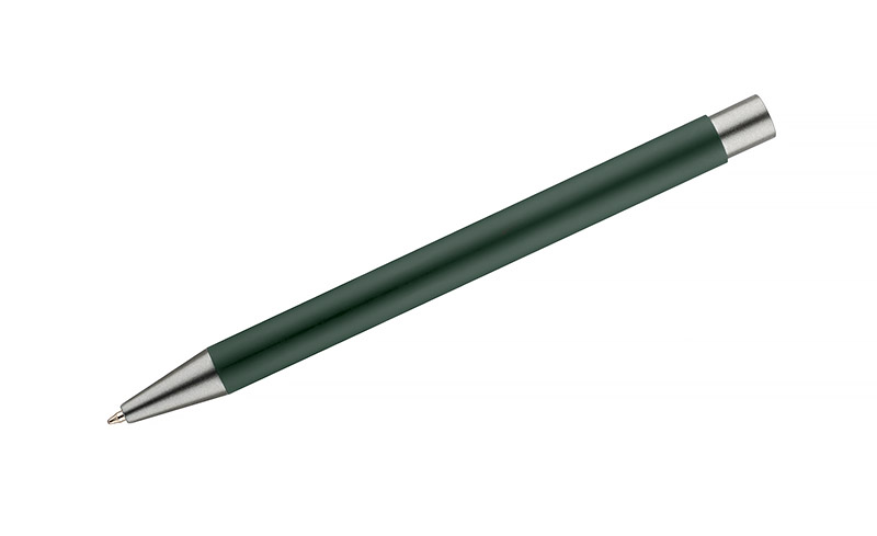 Długopis GOMA to prosty design połączony z przyjemną w dotyku gumowaną powierzchnią. Całość jest utrzymana w lekkich, matowych barwach. Wykonany z aluminium. Wykończenia w kolorze grafitowym. Wkład w kolorze czarnym.