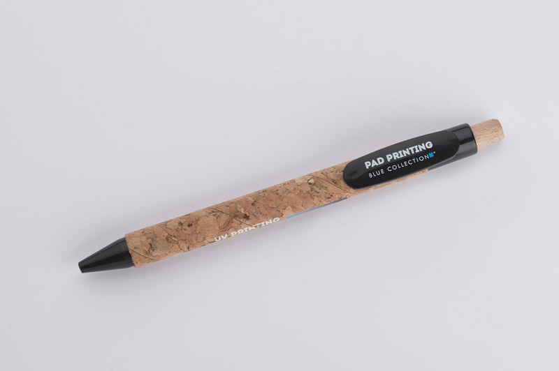 Długopis KORTE nawiązuje swoim wyglądem do idei recyclingu. Korpus został wykonany z naturalnego korka, a przycisk z drewna. Wykończenia z tworzywa sztucznego w żywych kolorach dodają mu uroku. Wkład w kolorze niebieskim.