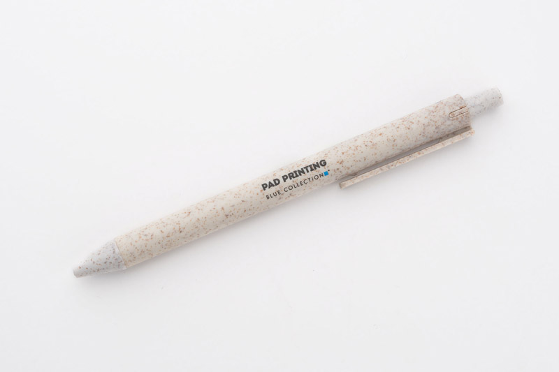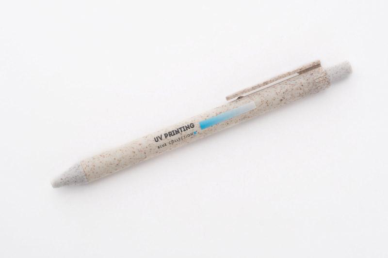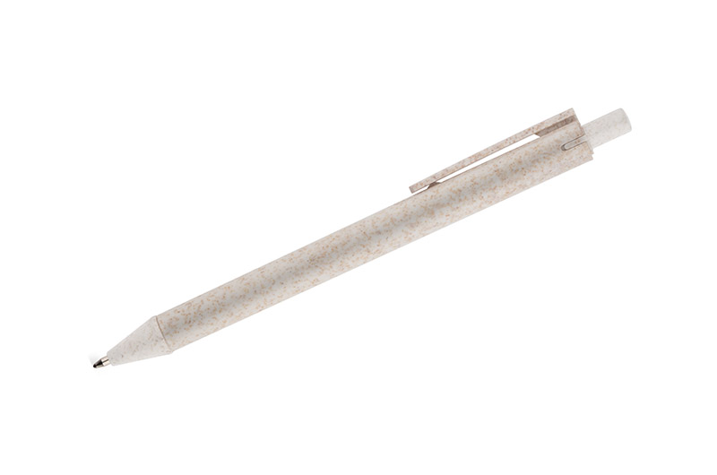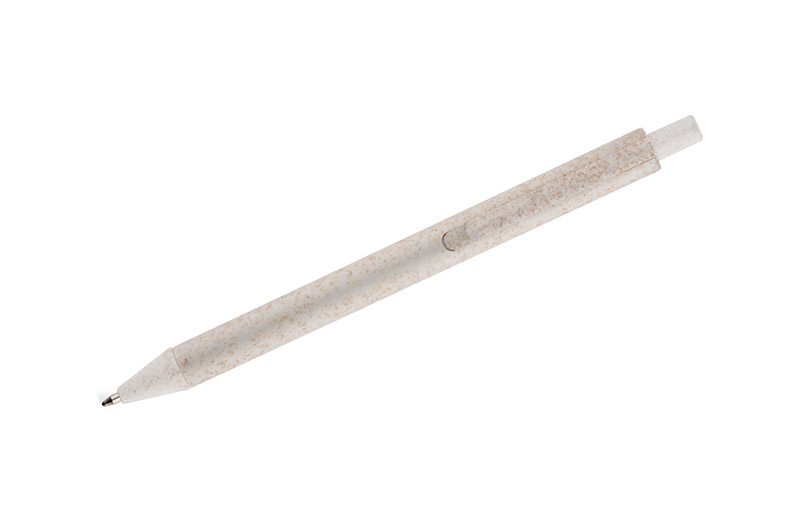 Długopis REVI został wykonany z myślą o wszystkich, którym bliska jest idea redukowania odpadów z tworzywa sztucznego. Tradycyjne tworzywo sztuczne zostało zastąpione specjalnym materiałem wykonanym w 40% z naturalnej słomy. Klasyczny, prosty kształt czyni go uniwersalnym gadżetem. Długopis automatyczny. Wkład typu X20 w kolorze niebieskim.