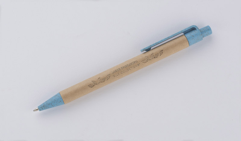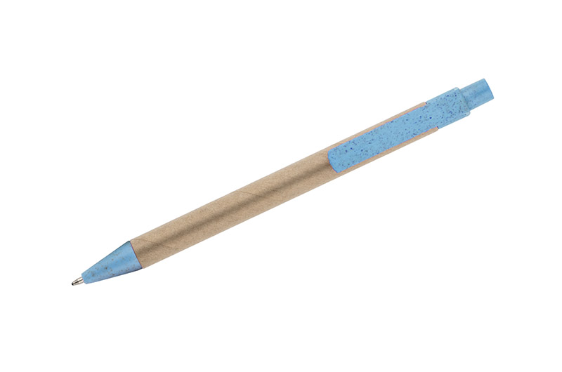 Długopis TIKO wykonany został z myślą o ponownym wykorzystaniu surowców. Jego korpus wykonany jest z papieru po recyklingu, a końcówki z tworzywa z domieszką słomy, która ogranicza ilość tworzywa sztucznego potrzebnego do produkcji. Prosty, ponadczasowy wzór. Długopis automatyczny. Wkład typu X20 w kolorze niebieskim.