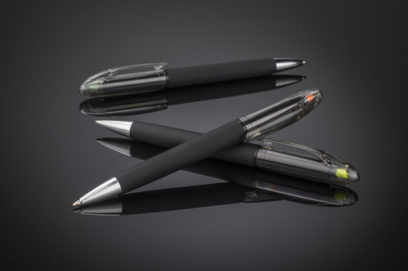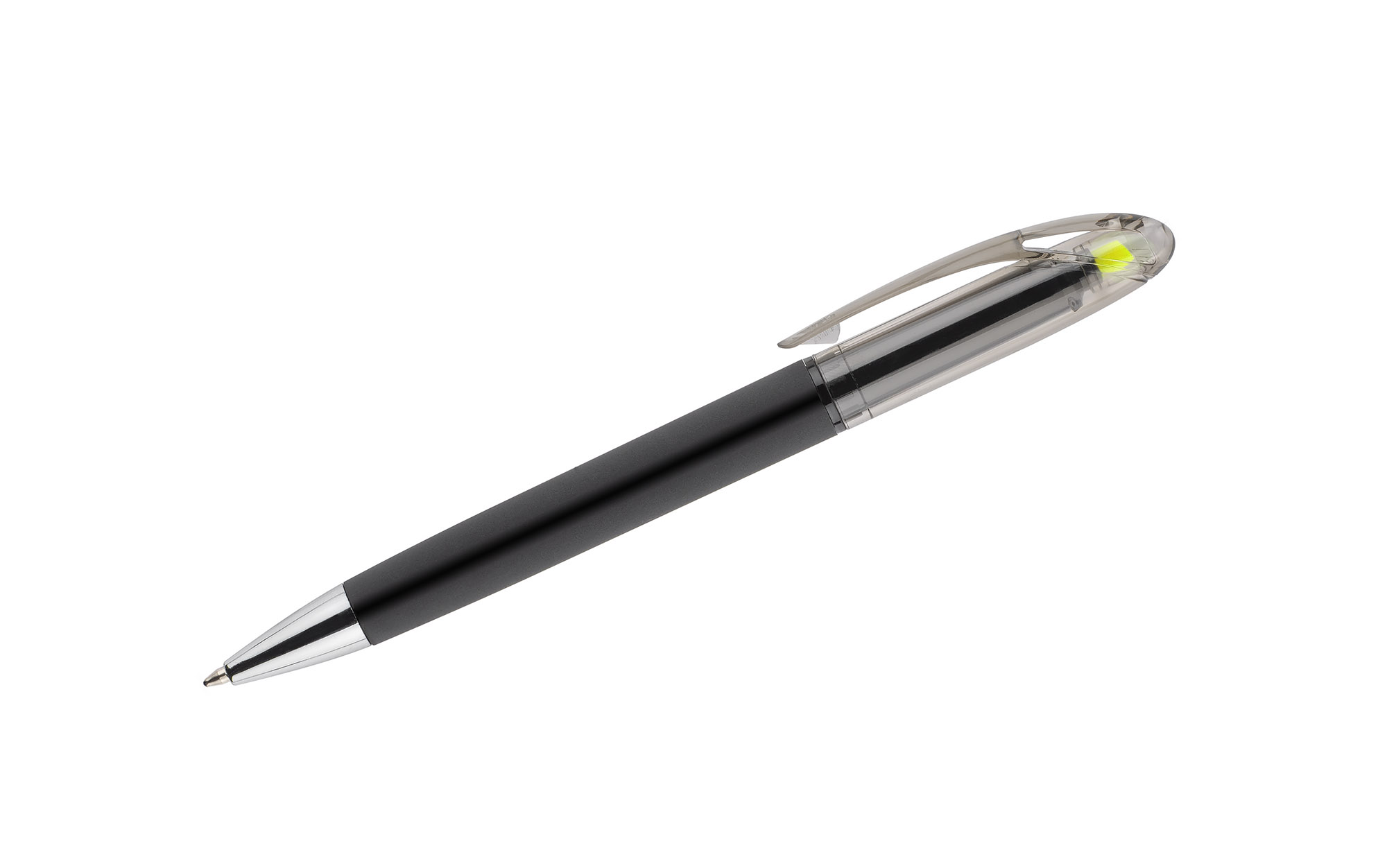 HILIG to dwa przydatne gadżety w jednym. Na górze tradycyjnego długopisu został umieszczony zakreślacz w żywym kolorze. Pokryty gumową powłoką korpus długopisu jest niezwykle przyjemny w dotyku. Długopis z mechanizmem typu twist, wkład długopisu w kolorze niebieskim.