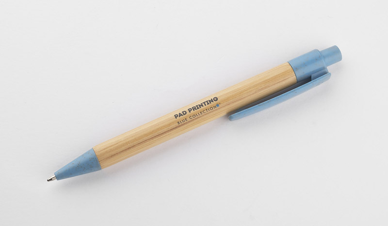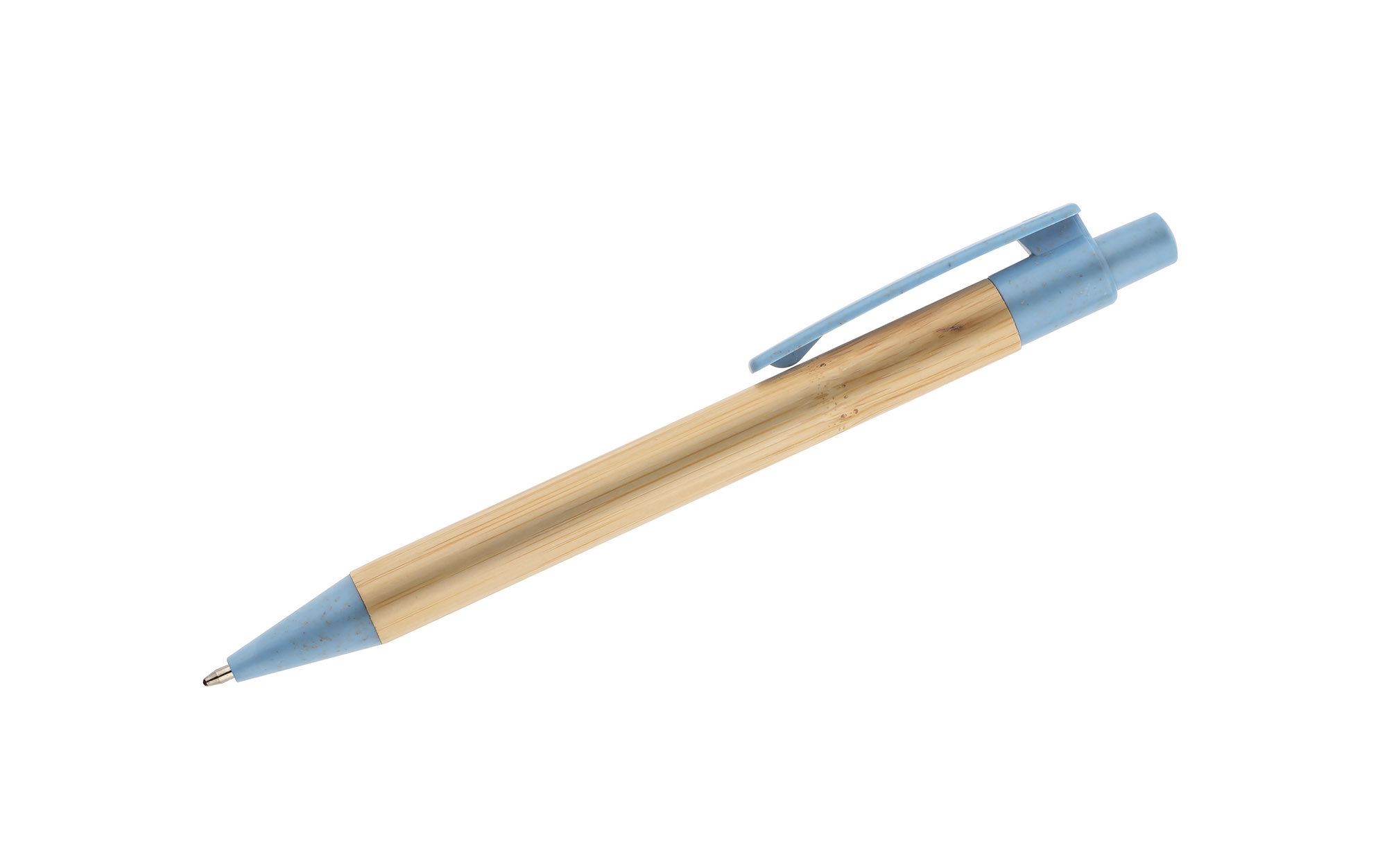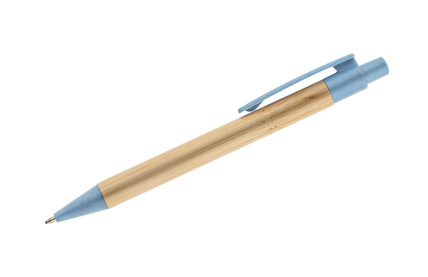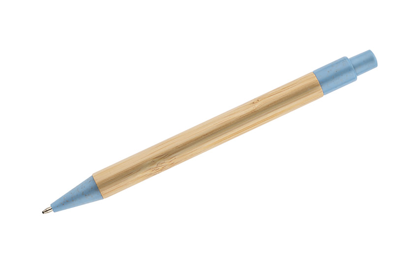 BAMMO to klasyczny długopis wykonany z materiałów przyjaznych środowisku. Bambusowy korpus połączony został z wykończeniami z tworzywa wykonanego w 50% ze słomy. Długopis automatyczny, wkład w kolorze niebieskim.