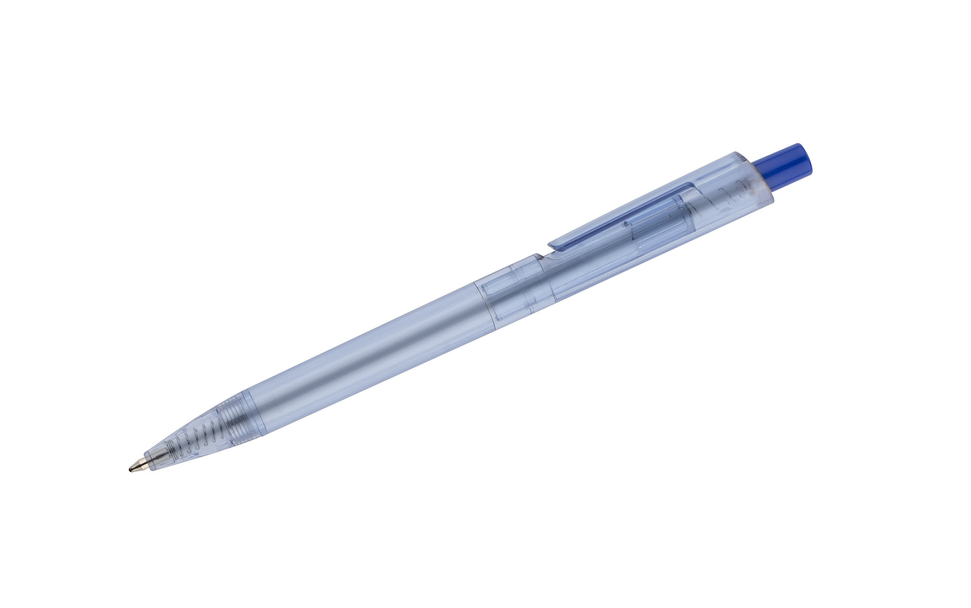 Długopis RECYKLO wytworzony w całości z tworzywa rPET (PET po recyklingu) jest odpowiedzią na poszukiwanie sposobów na zagospodarowanie odpadów z tworzywa sztucznego. Przezroczysty korpus w kolorze niebieskim przypomina wyglądem butelki do wody, z których został wyprodukowany. Długopis automatyczny, wkład typu G2 w kolorze niebieskim.
