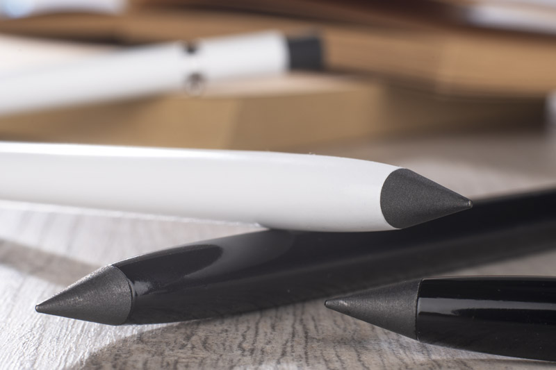 ETERNO to nowy typ ołówka, który zawsze będzie zatemperowany i nigdy się nie wypisze. Tradycyjny grafit został tu zastąpiony specjalnym utwardzonym rysikiem, który daje komfort pisania podobny do świeżo zatemperowanego ołówka. Korpus wykonany z aluminium zapewnia trwałość na lata. Na górze umieszczona gumka do mazania, która bez problemu zetrze notatki wykonane ołówkiem ETERNO (możliwość użycia także innych standardowych gumek). Ołówek wpisuje się w trend eko pozwalający zminimalizować ilość odpadów oraz surowców zużytych do produkcji przedmiotów codziennego użytku. Pakowany w czarne papierowe etui z infografiką z tyłu.