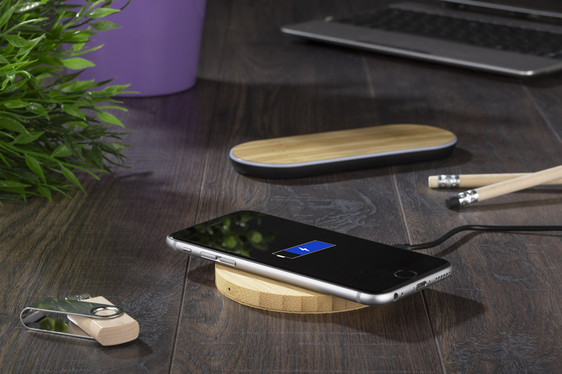 Modna ładowarka indukcyjna KYOTO wykonana w całości z naturalnego bambusa od razu przyciąga wzrok i pozwoli ci zapomnieć o irytujących kablach. Technologia ładowania bezprzewodowego staje się coraz bardziej powszechna w urządzeniach mobilnych, dlatego taki gadżet to świetny pomysł na upominek. W tym wydaniu również dla dbających o środowisko. Dane techniczne: wejście 5V/2A.