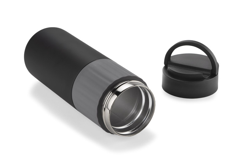 Butelka termiczna HOLDEN dzięki próżni między ściankami trzyma temperaturę ok. 12 godzin. Wykonana jest ze stali nierdzewnej 304. Posiada wygodny silikonowy uchwyt. Przykrywka wykonana z tworzywa posiada w swojej konstrukcji stojak do telefonu