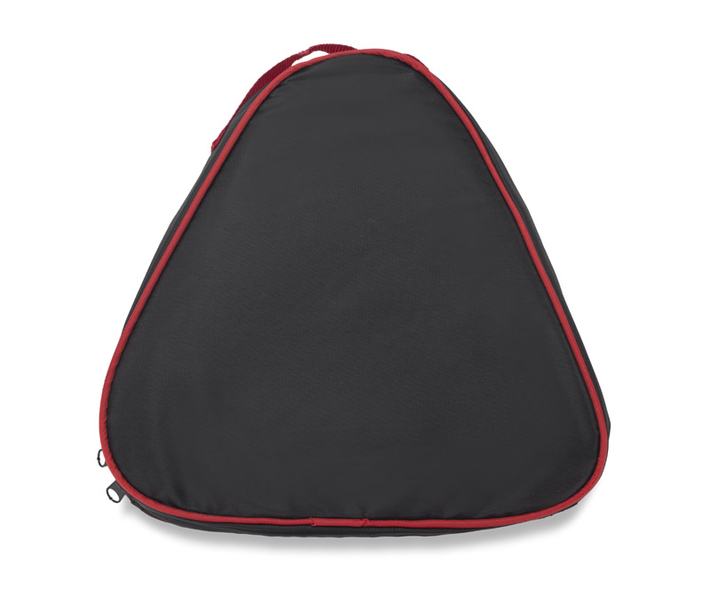 Zestaw narzędzi samochodowych umieszczony w torbie z poliestru, która dzięki swojemu kształtowi może zostać wykorzystana jako trójkąt ostrzegawczy. Zestaw zawiera: kable do ładowania akumulatora, przyrząd do pomiaru ciśnienia opon, komplet śrubokrętów i nasadek kluczy, latarkę dynamo, rękawiczki ochronne, nożyk oraz ponczo przeciwdeszczowe. Logo naniesiemy metodą sitodruku.