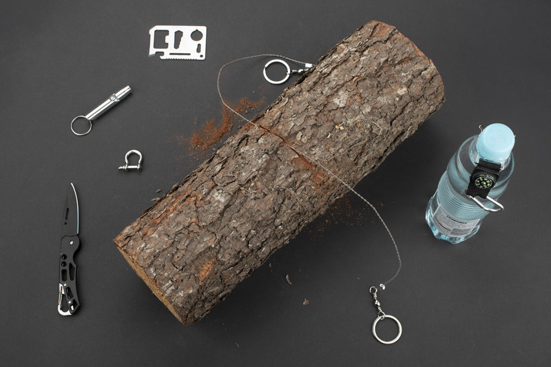 Zestaw outdoor BALE to gratka dla miłośników survivalu. W jednym zestawie znajdziemy wszystko co sprawdzi się podczas niejednej wyprawy. Zestaw składa się z sześciu elementów: uchwytu na butelkę z karabińczykiem i kompasem, ręcznej piły łańcuszkowej, składanego noża, gwizdka, szekli żeglarskiej i karty survivalowej która posiada aż 11 funkcji: otwieracza do puszek, butelek, śrubokrętu, linijki 4cm, klucza czteropozycyjnego do różnych rozmiarów nakrętek czy śrub, otwieracza motylkowego, piłki dwurzędowej, wskaźnika mapowego, klucza dwupozycyjnego i otworu na smycz lub kółko do kluczy. Zestaw pakowany jest w czarne etui.