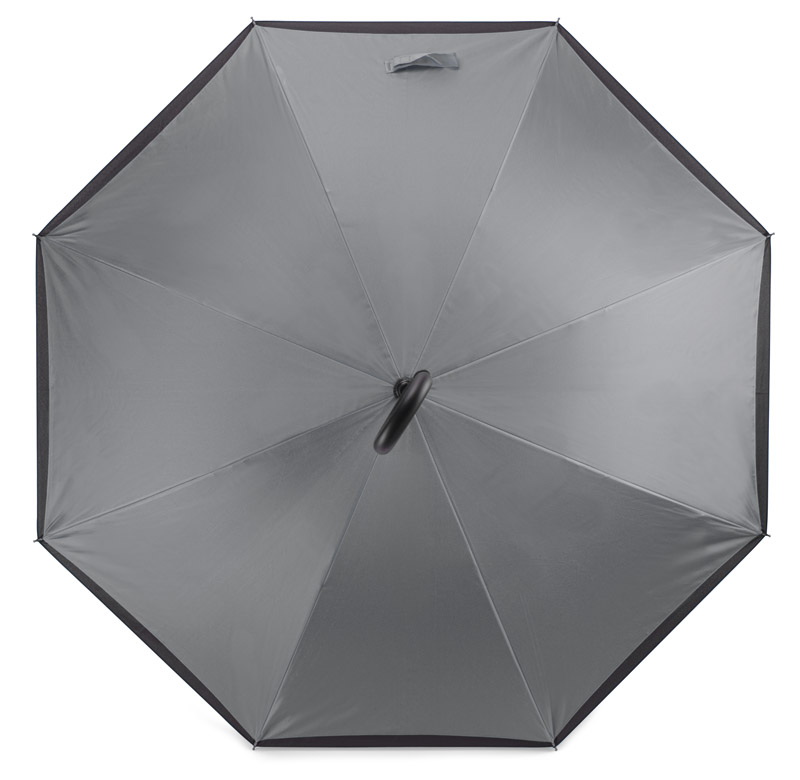 Rewolucyjny parasol REVERS wyróżnia się nie tylko kształtem ale też funkcjonalnością. Poprzez odwrócenie ruchu zamknięcia parasola woda, która osadziła się na czaszy pozostaje wewnątrz. Dzięki temu użytkownik oraz otoczenie pozostają suche. Dodatkowo parasol wyróżnia się charakterystyczną rączką, która jest bardzo przydatna w sytuacjach gdy trzeba wykonać czynność obiema rękoma. Dwustronna czasza wykonana z poliestru 190T.
