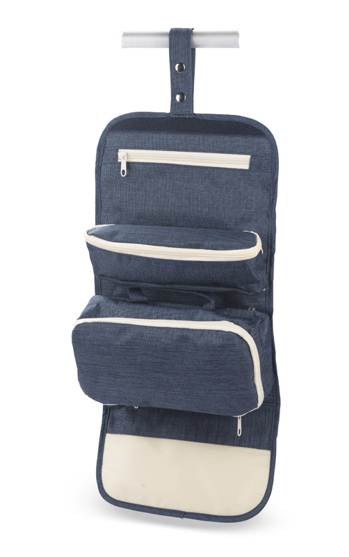 Rozwijana kosmetyczka ROLLI sprawdzi się w każdej podróży. Kosmetyczka wyposażona jest w dwie mniejsze odpinane saszetki, w kieszonkę zamykaną na zamek oraz uchwyt umożliwiający przyczepienie kosmetyczki w łazience np. do wieszaka na ręcznik. Kosmetyczka wykonana z przyjemnego dwunitkowego poliestru 300D.