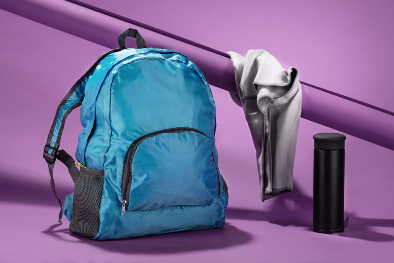 Funkcjonalny plecak, który można złożyć do niewielkich rozmiarów. Posiada jedną wewnętrzną kieszeń oraz trzy zewnętrzne - jedną zapinaną na zamek oraz dwie siateczkowe. Plecak wykonany z poliestru.